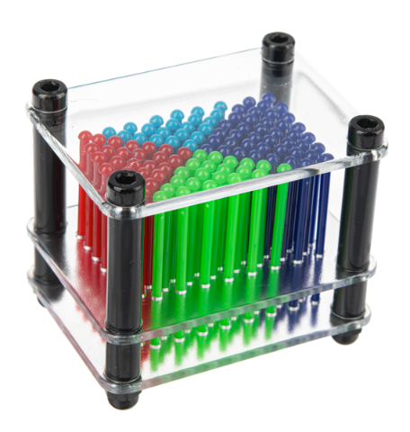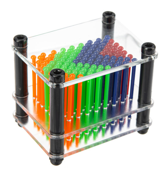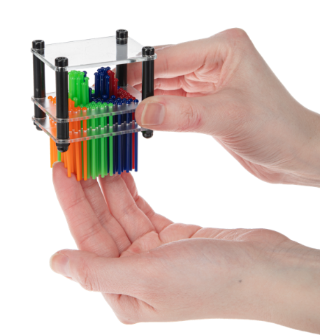 Use your hands or other small objects to cast fascinating formations into the plastic push pins.
