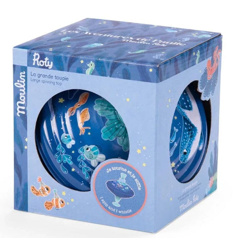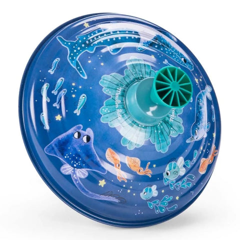 Large metal spinning top, illustrated with Paulie's friends exploring the seabed! Here they are, moving forward in step with the speeding top!
