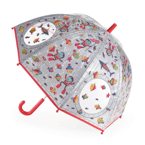 A cool, practical umbrella with submarine detailing and an underwater world to discover through the portholes! Opens manually, with a safety system so children can open and close it without pinching their fingers. A colourful accessory, ideal for brightening up outings in the rain!