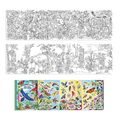 A fold-out sheet of vibrant stickers brings the critters to life while the back offers an additional illustrated landscape perfect for colouring and stickering.