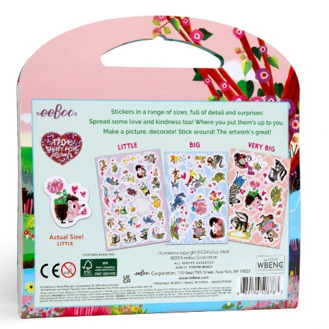This sweet array of love-themed stickers in 3 sizes will inspire imaginative sticker-play for all ages. Perfect for Valentine's Day or whenever cupid's arrow strikes. Featuring cheerful and vibrant illustrations by Linda Bleck, each sticker is embellished with shiny rainbow foil for added sparkle!