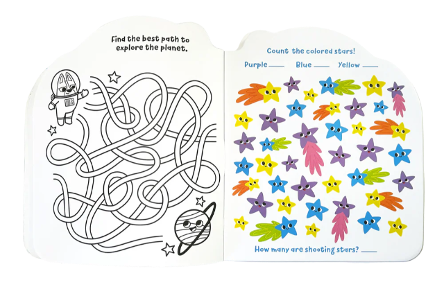 These boredom busting travel games for kids will keep the ‘are we there yet?’ questions at bay. This set includes 60 pages of games, including colouring pages, puzzles, and mazes for kids, along with loads of stickers as well. Each page also features a cutie-pie pets in space theme, which will help launch your kiddo into their happy place while you’re traveling or simply getting through your afternoon errands.