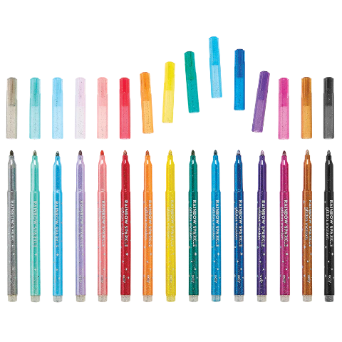 This set of rainbow sparkle glitter markers includes 10 classic colours, like red and orange, along with 5 pastel shades, like pink and light blue. And while each of these 15 markers may have their own distinct radiant colour, they all add a glistening shimmer with every mark they make! Using glitter markers for colouring will not only amp up your drawing game, it’ll remind you that sometimes, life deserves a little flare!