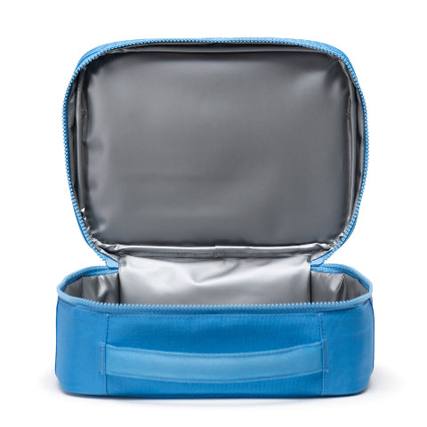 The durable Pop Quiz Lunch Box features a soft and insulated main snack compartment that easily wipes clean, making it the perfect cafeteria companion.