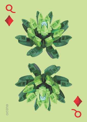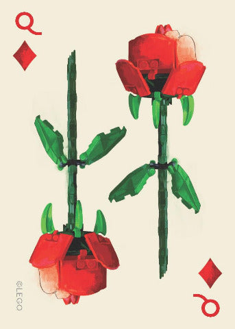 A deluxe boxed set of playing cards that includes two standard 54-card decks featuring vibrant, hand-drawn blossoms and succulents from the bestselling LEGO Botanical sets.