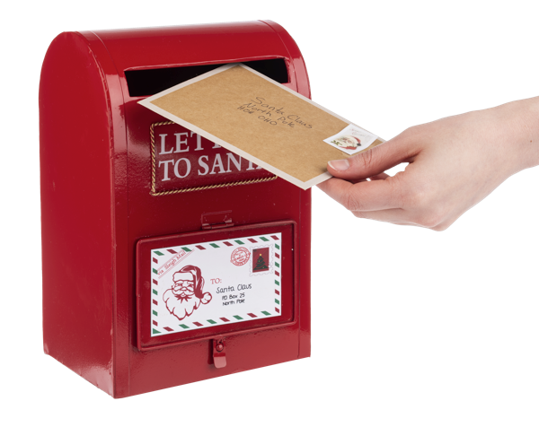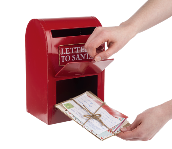This Letters to Santa Mailbox is a wonderful addition to any Christmas display. The door opens at the bottom to collect the letters. This fully functioning mailbox is a fun addition for children to drop in their letters to Santa Claus.
