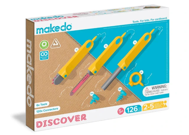 Unlock endless creativity with the Makedo Discover Kit! The ultimate gift for makers of all ages. Includes every tool in the Makedo family of tools plus a handy storage tray.