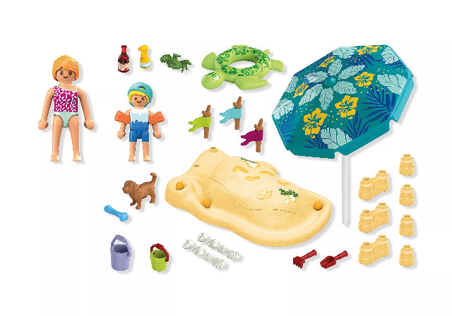 It’s beach day with PLAYMOBIL! Kids can build their dream sandcastle using the customizable elements, race marbles down the mini watercourse, and even bury a figure in the sand with the removable lid. Flags and the parasol can be placed around the beach for ever-changing play. The set includes a playful dog, a curious crab, and lots of beach accessories – from shells and buckets to a swimming ring and sun cream. With so many fun details, this colourful PLAYMOBIL playset is perfect for sunny, imaginative adventures full of creativity, laughter, and seaside surprises.