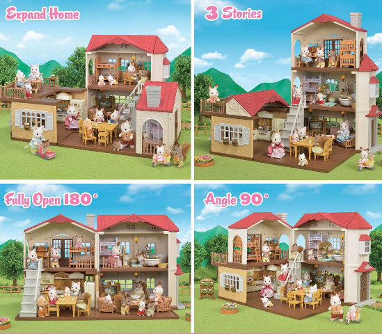 This set contains the Red Roof Country Home, furniture in original colours, and the Chocolate Rabbit girl, Koala baby and Fennec Fox baby, all in special outfits.