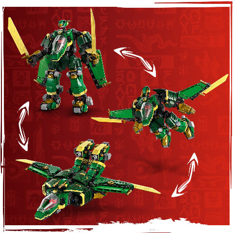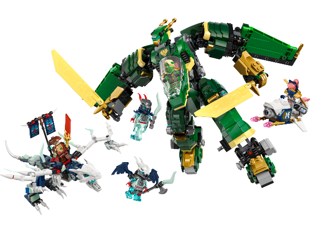 Get ready for epic battles with Lloyd’s Jet Mech. Put it into mech mode to fight with 2 large swords on the ground, then transform it into jet mode to soar into the sky! You must combat Kur, the Master of Decay, Tyr and a Spectral Dragonian Warrior. Sora can attack them on her flying motorcycle – but watch out for this villainous trio’s dangerous specter dragon. Let’s lead the ninja to victory!