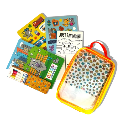 Designed for on-the-go entertainment, this colouring kit is perfect for travel, restaurants, or quiet time at home. Kids can use the stickers to decorate their activity book and postcards, adding a fun, interactive element to their creations. Whether colouring, playing games, or sending a special note to family and friends, this all-in-one activity set keeps kids engaged without screens.