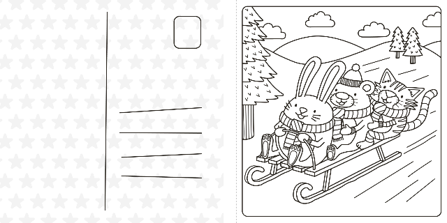 Immerse yourself in 30 cute, cozy, tear-out postcard colouring pages, and daydream about the joys and comforts of the Christmas holidays.