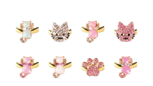 This playful variety of cat themed rings from cute kitty faces to paw prints and sleek silhouettes! Each ring spins with a flick, making them perfect for fidgeting, twirling, and showing off some feline flair.