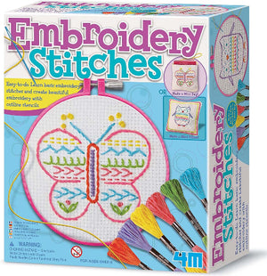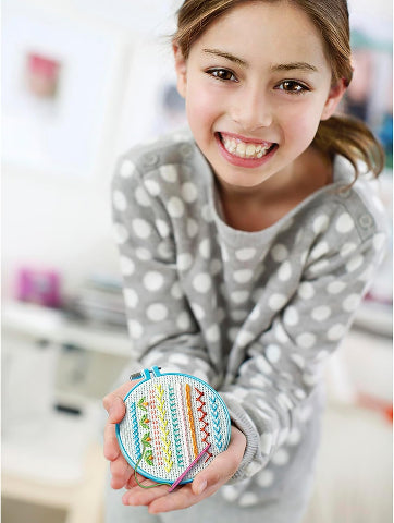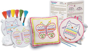 Start a hobby that will last a lifetime with the Embroidery Stitches Kit. Its easy-to-follow patterns show how to make a mini pillow or bag embroidered with an adorable design. This kit helps teach pattern matching and coordination, making it a perfect gift for kids and adults with a budding interest in crafts. It comes with everything you need to get started, including one set of hoops, six spools of coloured embroidery floss, three sheets of canvas, two outline templates, two plastic needles, pillow stuffing, and instructions.