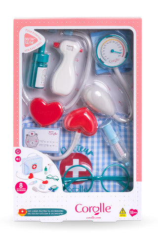 The large Doctor set includes all the tools to pretend play like a real Doctor or nurse, like a stethoscope that simulates a heartbeat, retractable play syringe, dropper bottle, flexible cast, a convenient carry/storage bag and more!