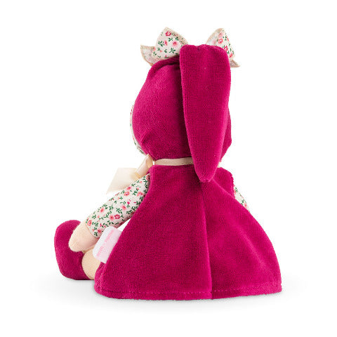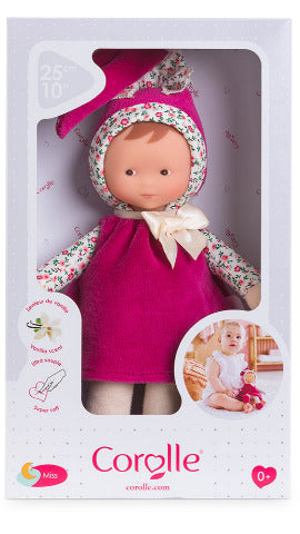 Pretty little doll made of soft fabric, wearing a pretty dress and hat. Vinyl face is soft and supple. Children find them very easy to hold and, because of their size, they can follow you wherever you go! Comforting vanilla scent.