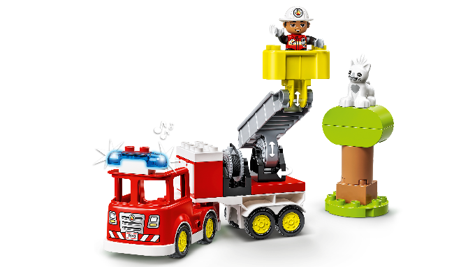 A cat is stuck at the top of a tall tree! The fire truck races to the scene with lights flashing and siren sounding. Your little hero can push and turn the truck’s lever to raise the ladder and rotate the basket. If the poor pussycat still won’t budge, there are some tasty treats that might tempt it down. And if that doesn’t work, it’s time to pull out the water hose! 2+ years.