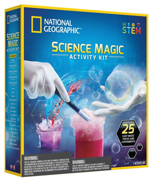 The National Geographic Science Magic Activity Kit gives your child the chance to be a scientist and magician all at once! This exciting science magic kit has everything you need to conduct 15 experiments that also double as magic tricks. Plus, there are enough materials for you to practice your experiments once or twice before you put on an amazing magic show for your family and friends. And yes, magic wand and white gloves are included! What are some of the incredible things you’ll do? How about making a test tube disappear, changing the color of water, creating a square bubble, and cleaning up an oil spill? And that’s not all! Our full-color experiment guide features illustrated, kid-friendly instructions for each experiment, along with insight into the science at work. Your kids will learn so much about chemistry and physics they'll practically be experts! And the fun doesn't stop there. We also include a bonus experiment guide with 10 easy-to-perform science experiments using common household items. This is a phenomenal gift for girls and boys that love science and magic because it's the best of both worlds! 8+ years.